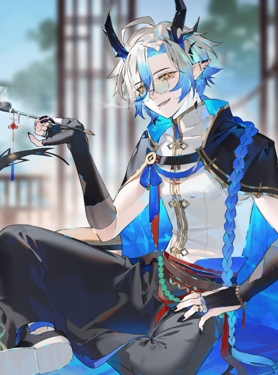 Dislikes: Nothing in particularKai is a wandering merchant, a laid-back man who travels often. He familiarized himself with both the professional and underground trading business. Although he never seems serious, he has extraordinary talents and is well versed on many things. From fashion to daily essentials, teas, spices,flora, fauna, wines, etc., due to his profession in trading.Albiet recently he finds more enjoyment in being a relaxed 'middle-aged' man (although constantly claiming he's young). He enjoys chatting with locals and helping out with odd tasks, from finding cats to pulling weeds.