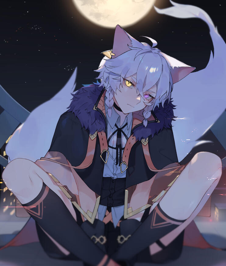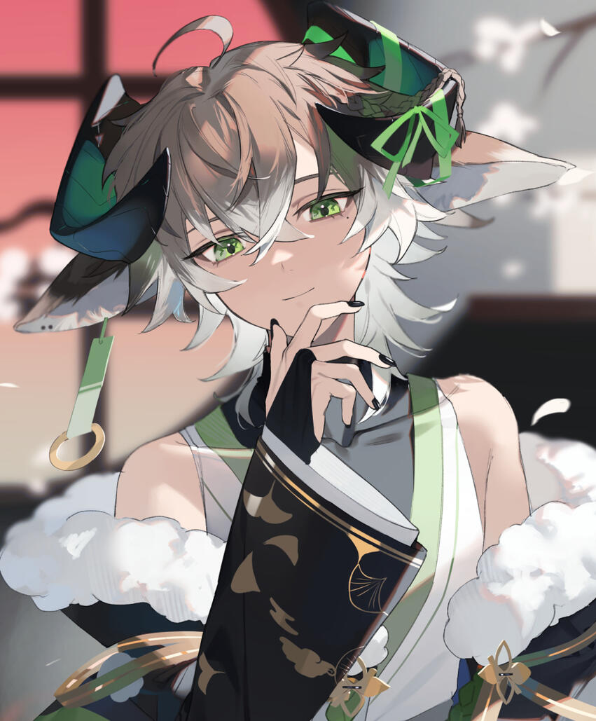 Dislikes: Spicy food, peppermint, stubborn people, headpats, slimy things, conflict.He is a very gentle, down to earth person. It doesn't take him long to open up and be outgoing due to his curious nature. Particularly due to his upbringing. He comes from a wealthy family, however they don't really pay much attention to him. Emotionally neglected and sheltered, he has few friends, once you get him talking he doesn't stop. He is embarrassed and roused easily, zero poker face. You can see right through him because everything he has to offer is genuine, he is baby. Making him an easy target for Kae's teasing and pranks, this is the only time he really seems to be angry. They became good friends over the topic of gardening and plants. (He initially feared for his life due to Kae being a wolf) Has a small crush on Kou, to Kae's annoyance.